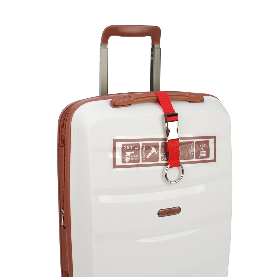 Seu sistema ajustável garante firmeza e adaptação a diferentes tamanhos de mala, além de ser leve e fácil de guardar quando não estiver em uso.