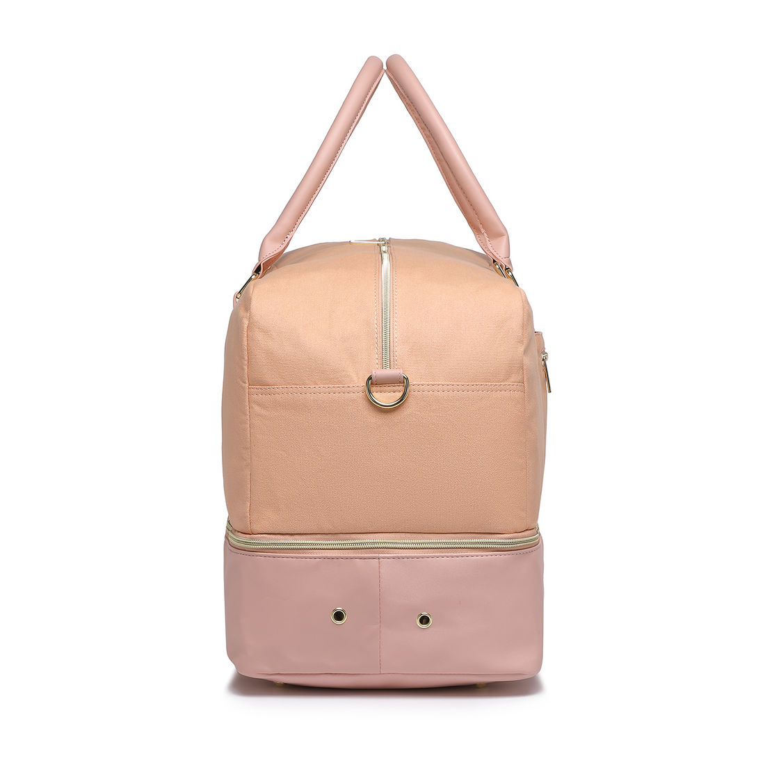Alças de Mão: Duas alças com costura dupla e reforço em couro sintético, garantindo resistência e conforto na pegada.