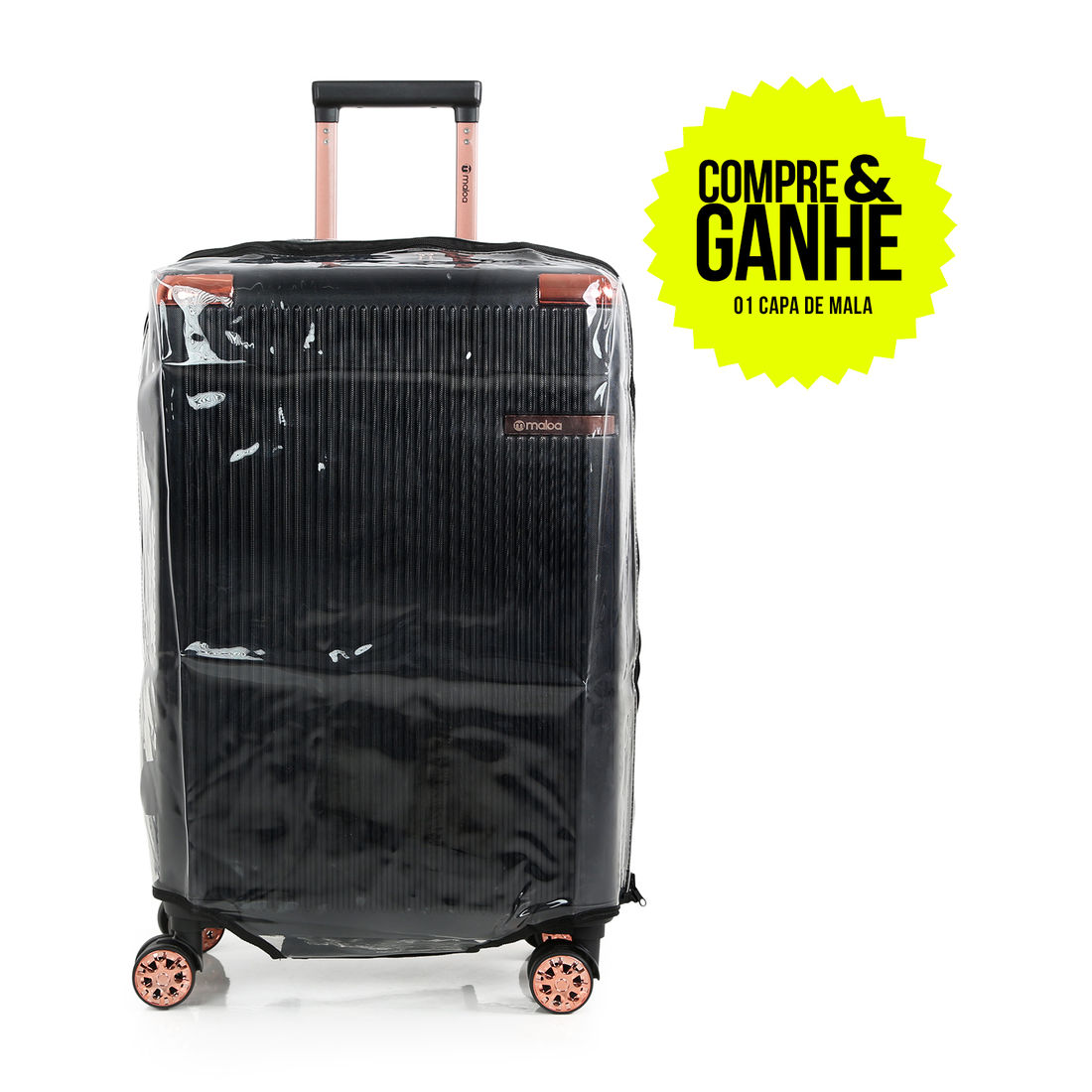 Acompanha 1 capa protetora em PVC transparente, ideal para manter sua mala sempre como nova.