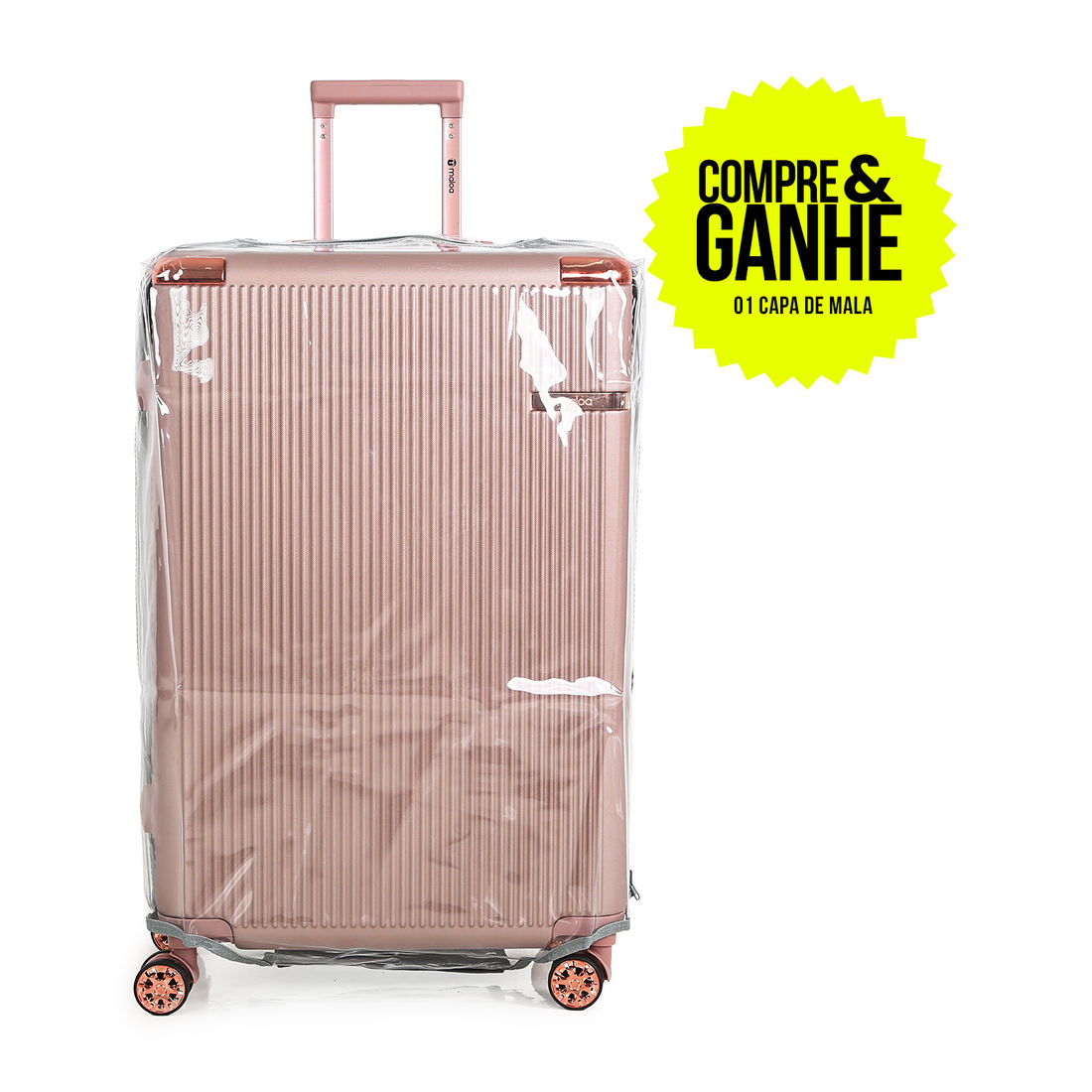 Acompanha 1 capa protetora em PVC transparente, ideal para manter sua mala sempre como nova.