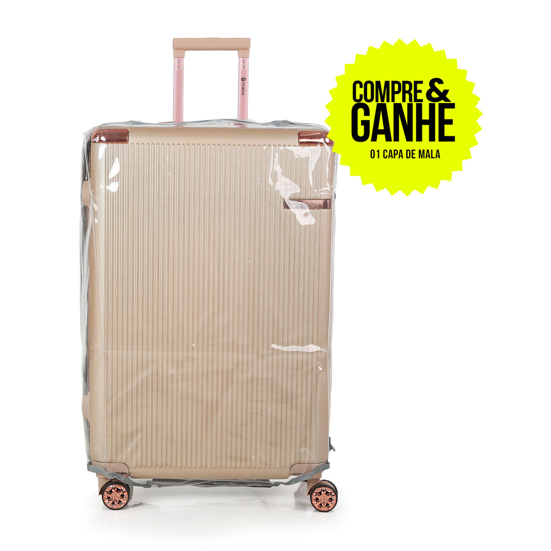 E para garantir ainda mais segurança, você recebe 1 capa protetora transparente em PVC, perfeita para manter sua mala sempre limpa e protegida contra arranhões, poeira e danos do transporte.