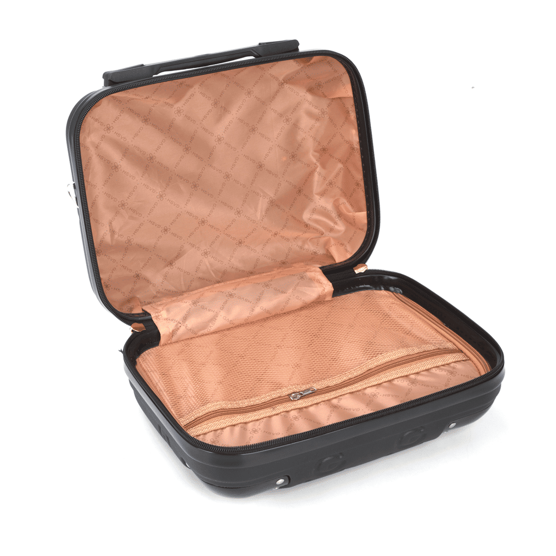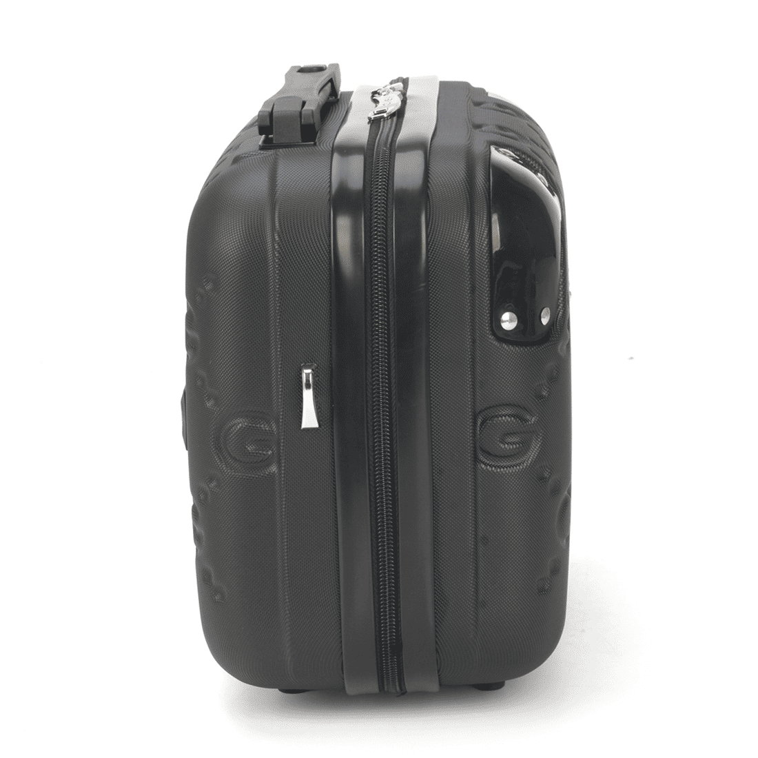 - Alça carona no verso do produto, que permite que a frasqueira seja levada no carrinho da mala de viagem