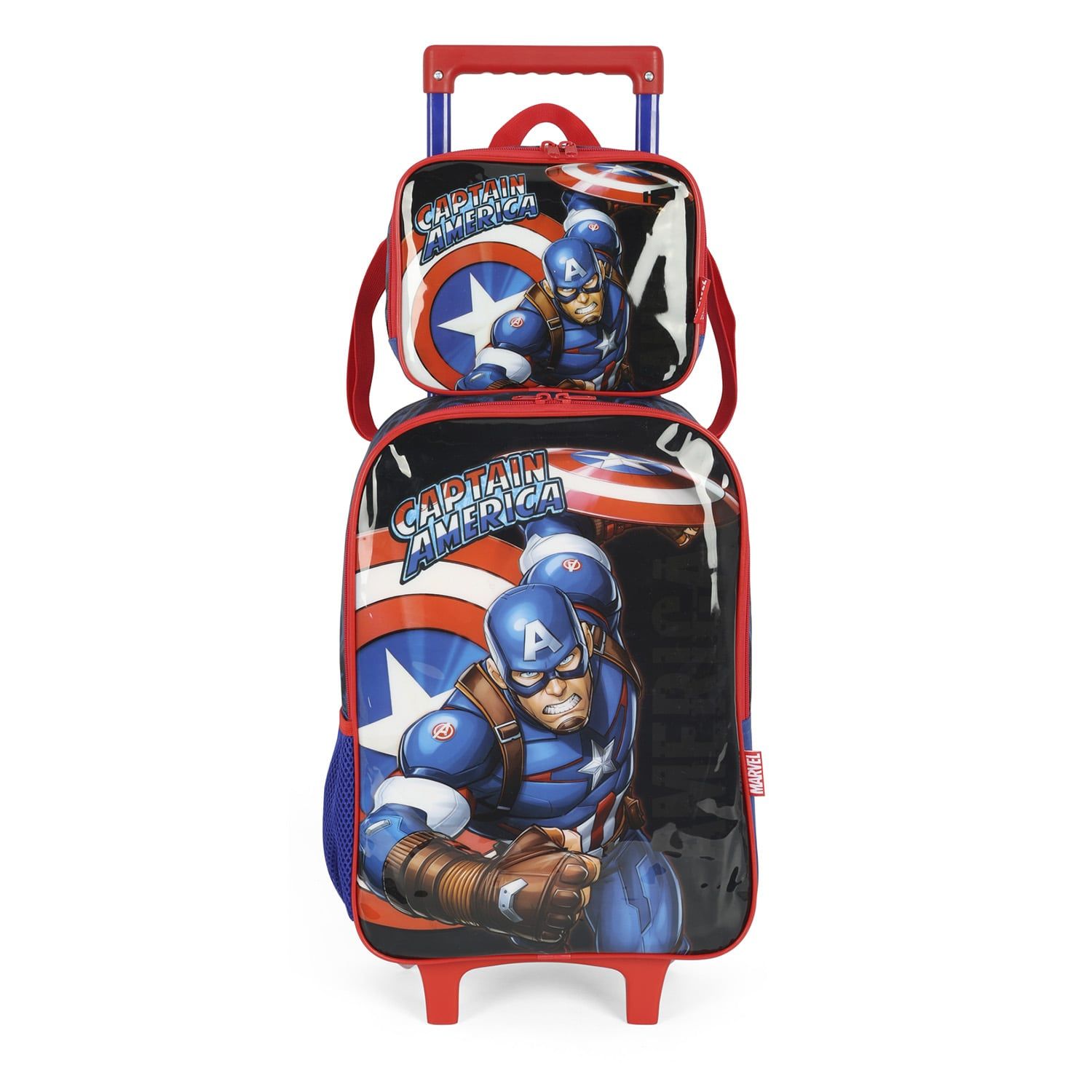 Ideal para os pequenos fãs do Capitão de América, este kit bolsa com rodinhas e lancheira combina praticidade e resistência com o estilo único do heroi, Composto por uma bolsa funcional e uma lancheira térmica, este kit oferece tudo o que seu pequeno precisa para carregar seus materiais escolares e lanches com muito estilo e praticidade. O design vibrante do Capitão América, aliado a materiais resistentes e confortáveis, garante durabilidade e facilidade no transporte, tanto da mochila quanto da lancheira.