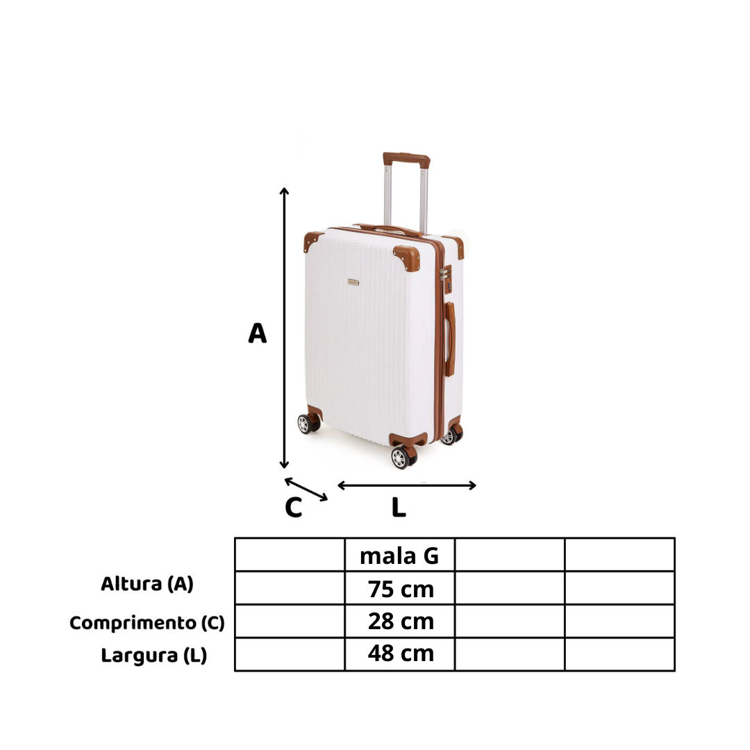 ɠfabricada em ABS, conhecido por sua qualidade e leveza, garantindo que sua bagagem permaneça protegida contra impactos e arranhões durante todo o trajeto.