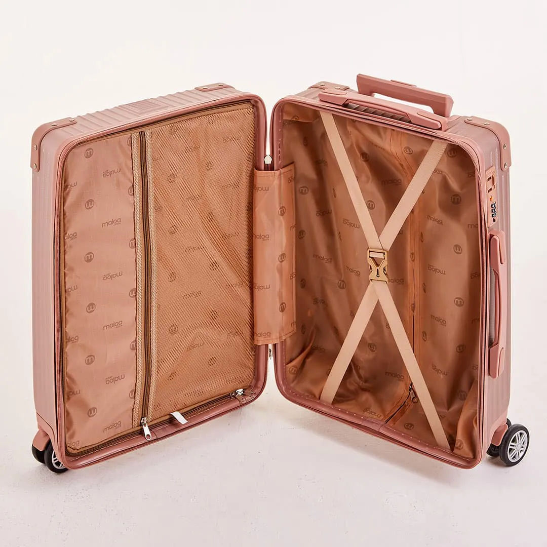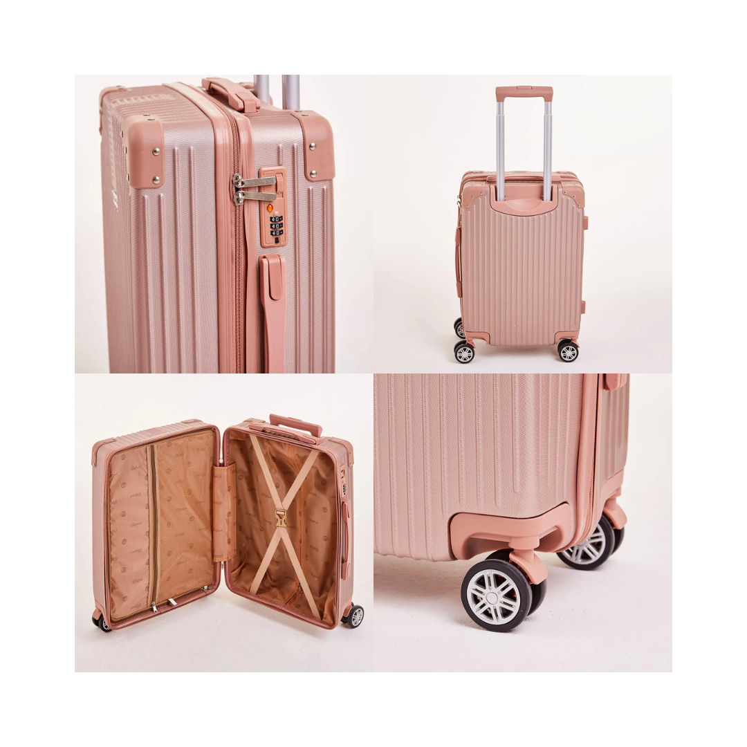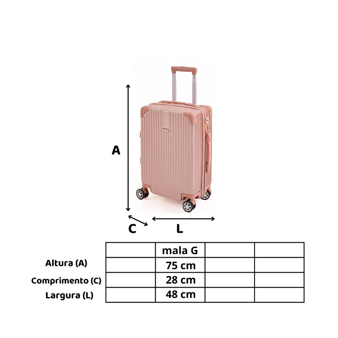 É fabricada em ABS, conhecido por sua qualidade e leveza, garantindo que sua bagagem permaneça protegida contra impactos e arranhões durante todo o trajeto.