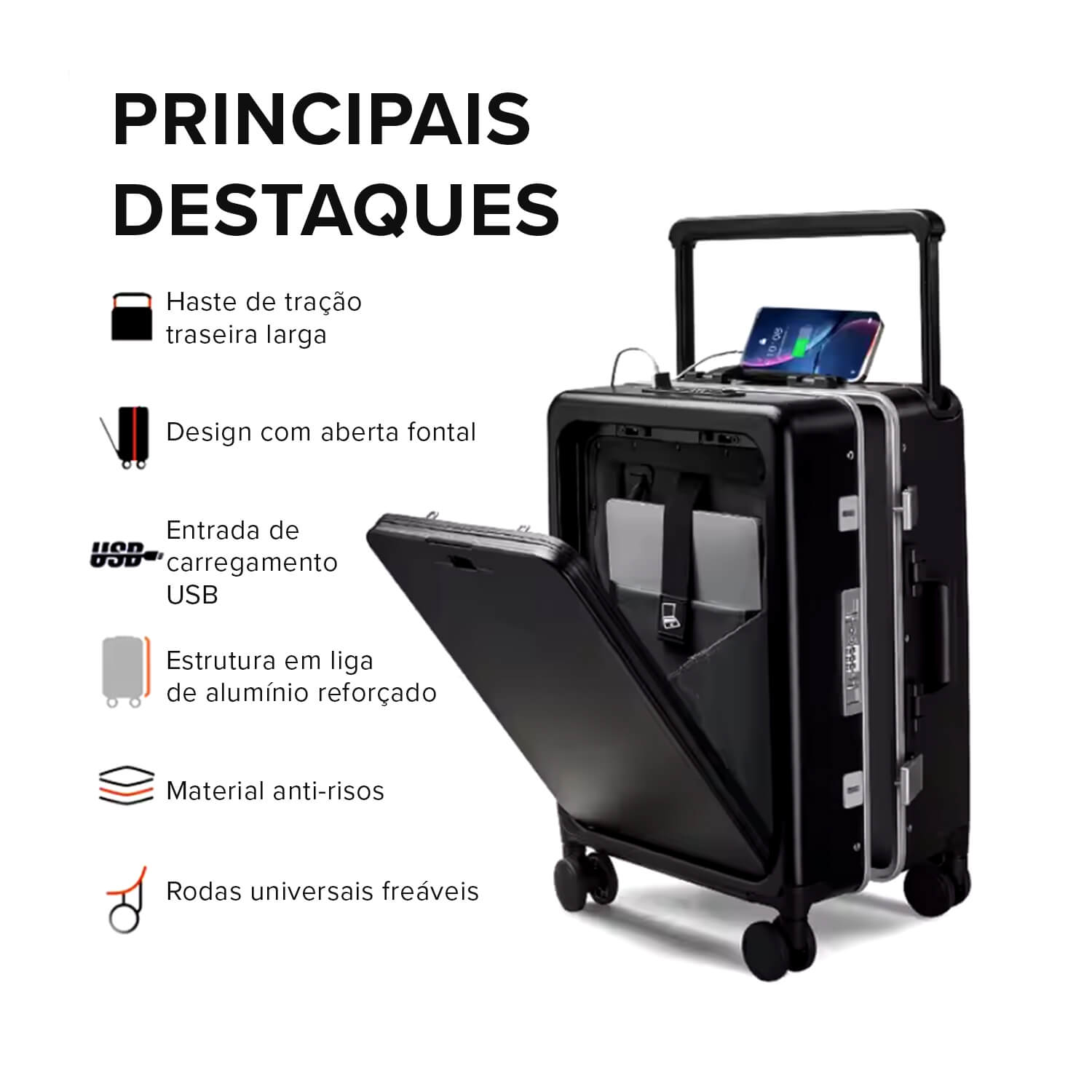 Ideal para viagens curtas e como bagagem de bordo, a Mala Berlim combina sofisticação, funcionalidade e segurança, sendo uma escolha confiável para o viajante moderno.