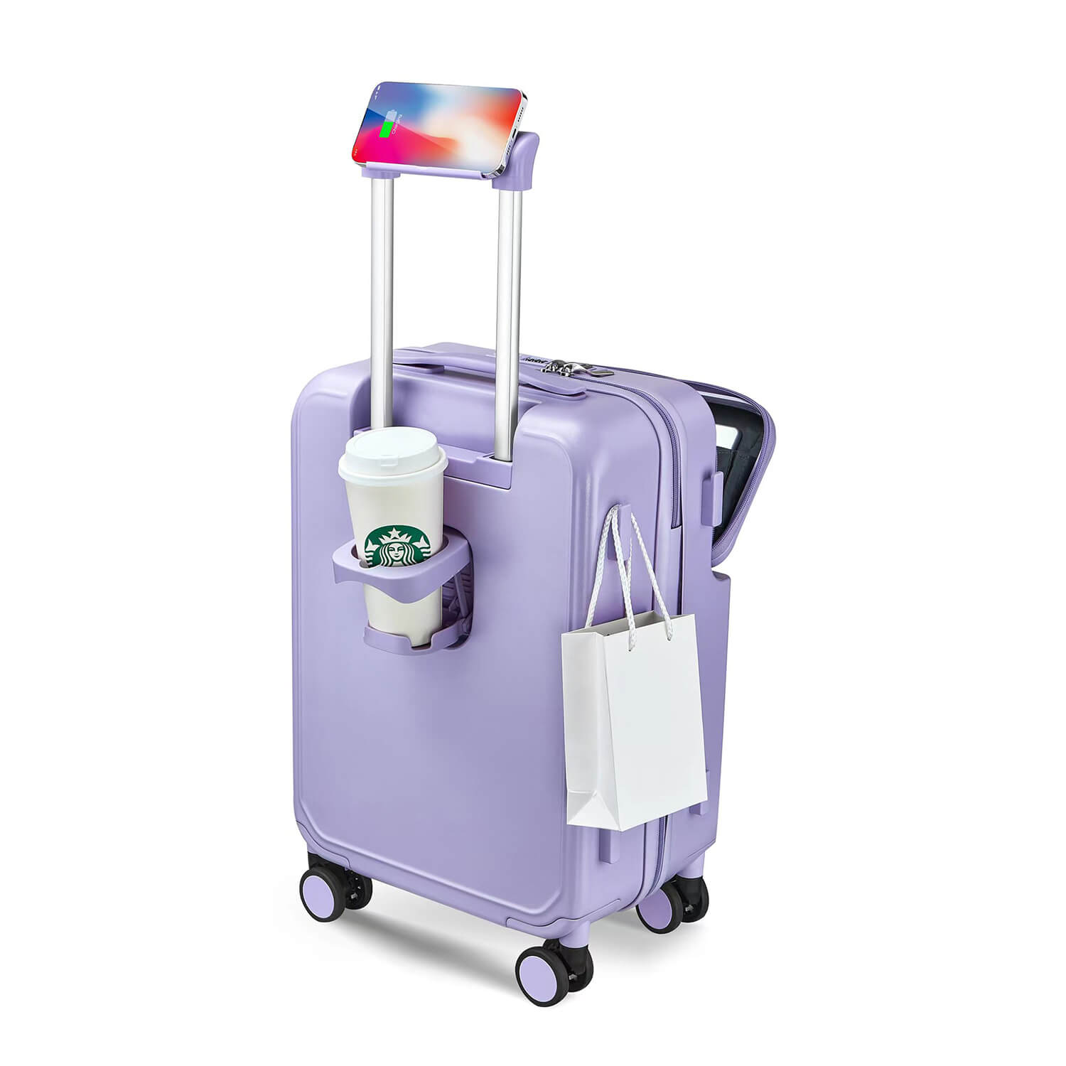 Espaço para Conveniência : Porta-copos integrados na parte traseira da mala e suporte para celular embutido, proporcionando uma experiência de viagem prática e organizada.