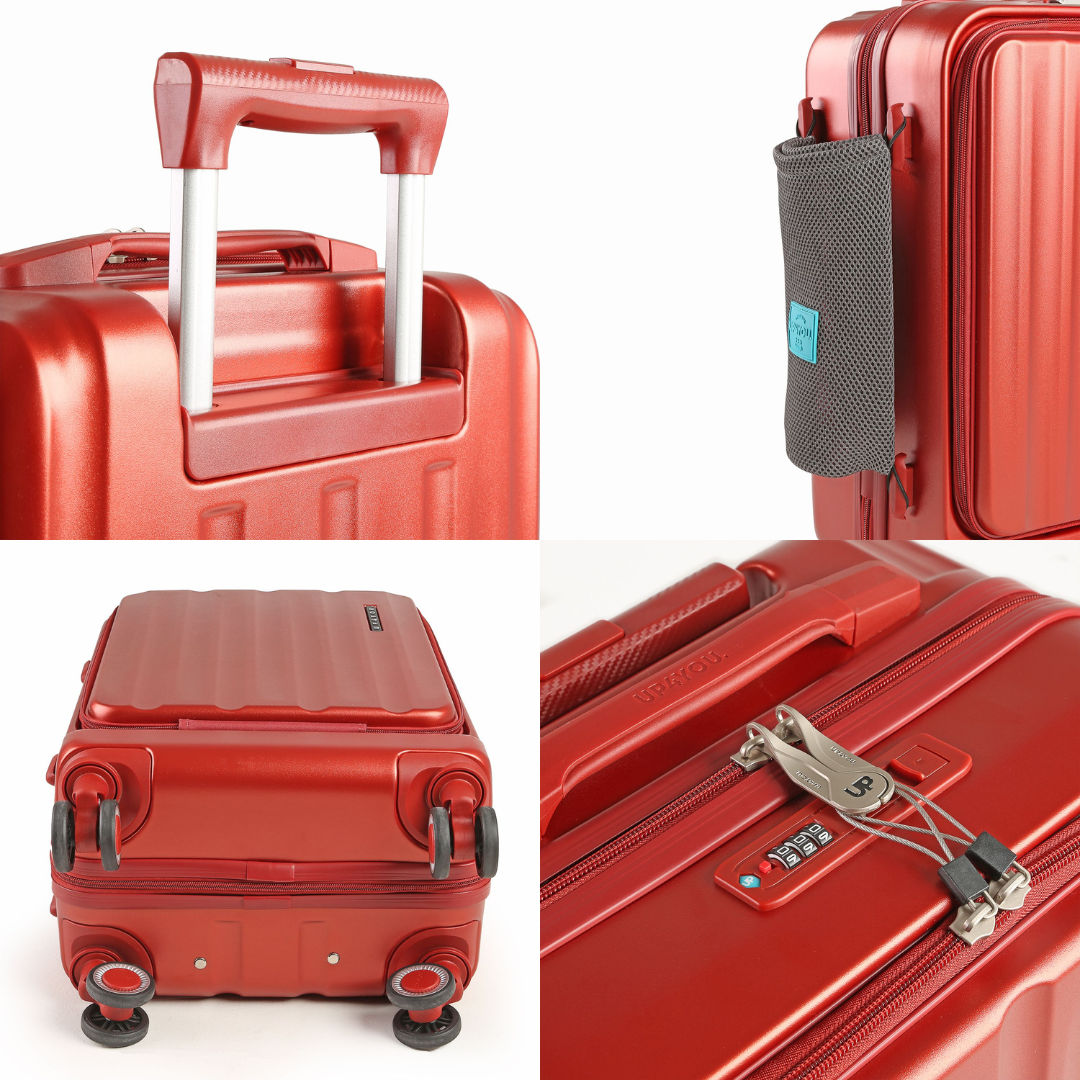 A mala, produzida em Policarbonato, possui material bastante resistente e super fácil de limpar. Além disso, conta com carrinho em alumínio embutido, o que deixa o produto muito mais leve e 4 rodas com giro de 360°, que facilita a sua locomoção. Internamente, possui cintas elásticas e bolso com zíper, para lhe ajudar na organização de seus pertences. Para sua segurança ela possui cadeado Embutido e pode ser levado à bordo.
