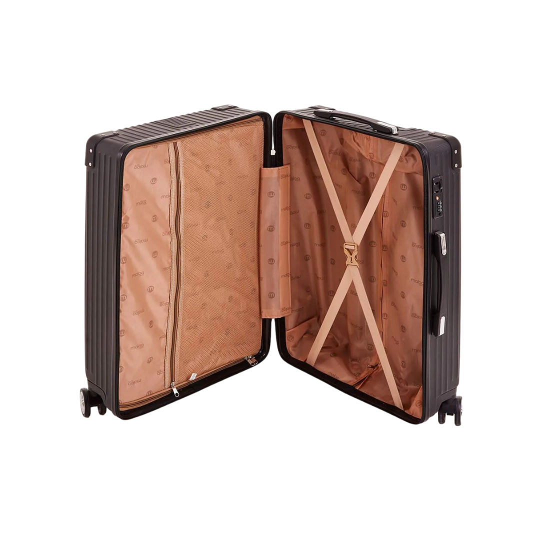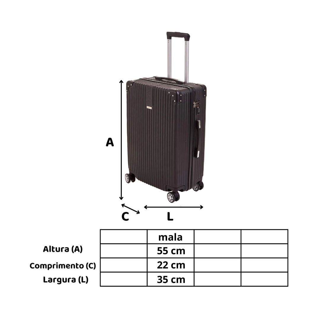 É fabricada em ABS, conhecido por sua qualidade e leveza, garantindo que sua bagagem permaneça protegida contra impactos e arranhões durante todo o trajeto.