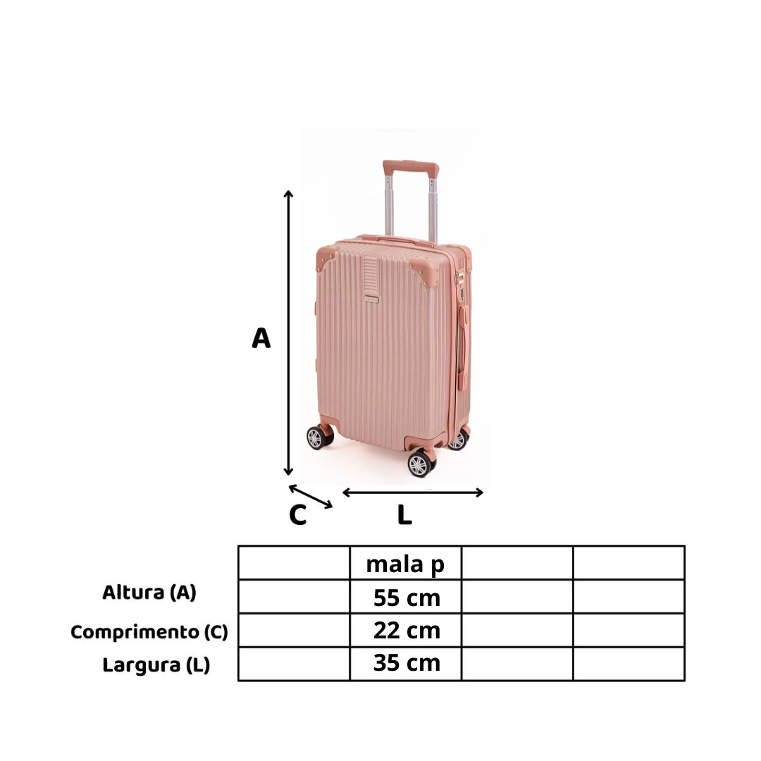 É fabricada em ABS, conhecido por sua qualidade e leveza, garantindo que sua bagagem permaneça protegida contra impactos e arranhões durante todo o trajeto.