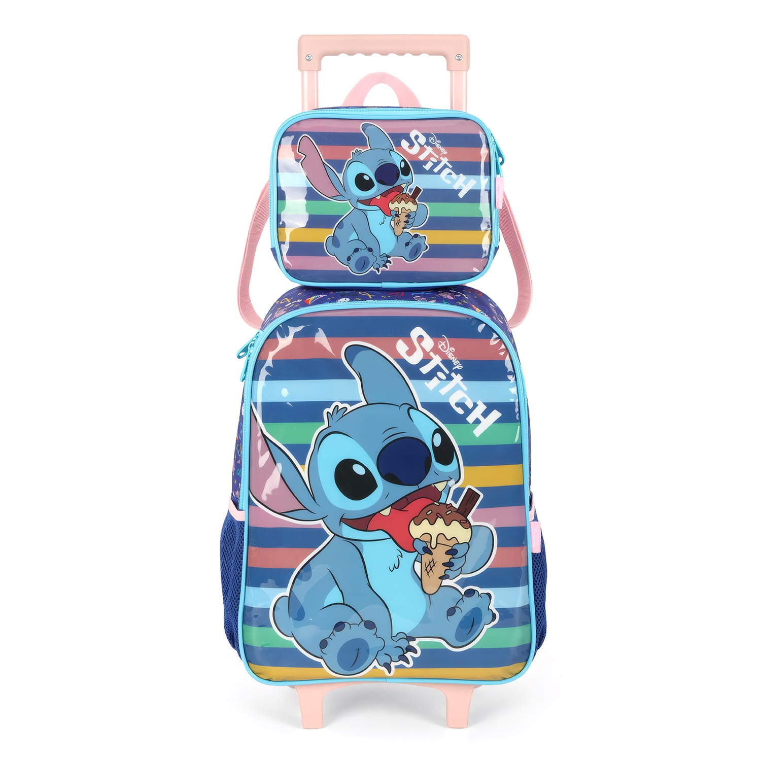 Este kit é a escolha ideal para pais que buscam praticidade, conforto e estilo para seus filhos. A bolsa com rodinhas permite um transporte mais fácil dos materiais escolares, enquanto a lancheira mantém os lanches frescos e organizados. Com o adorável Stitch estampado, este conjunto transforma a ida à escola em um momento ainda mais divertido.