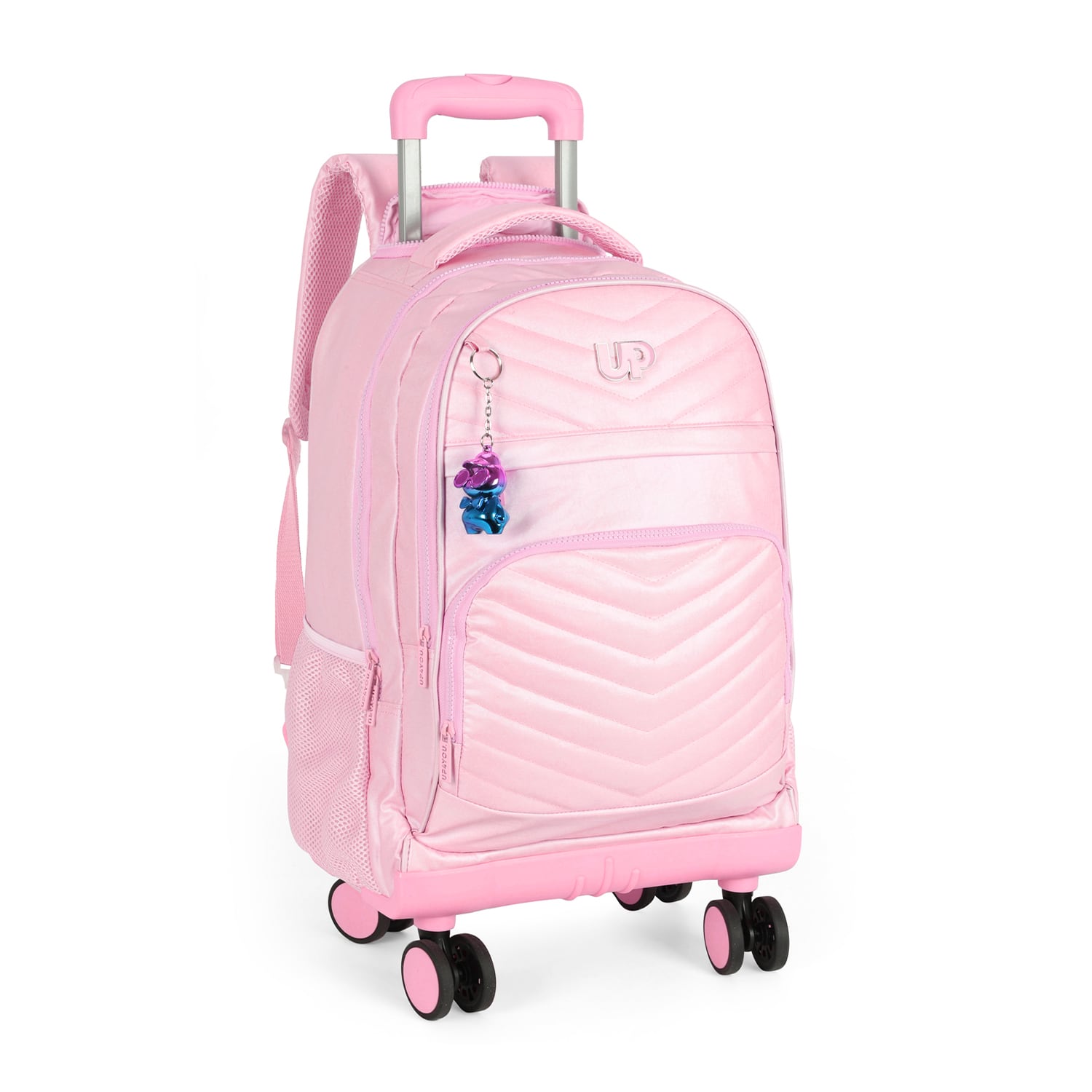 Com a Mochilete Escolar Juvenil com Rodinhas UP4YOU Rosa, seus dias escolares ou viagens curtas ganham muito mais diversão, estilo e organização!